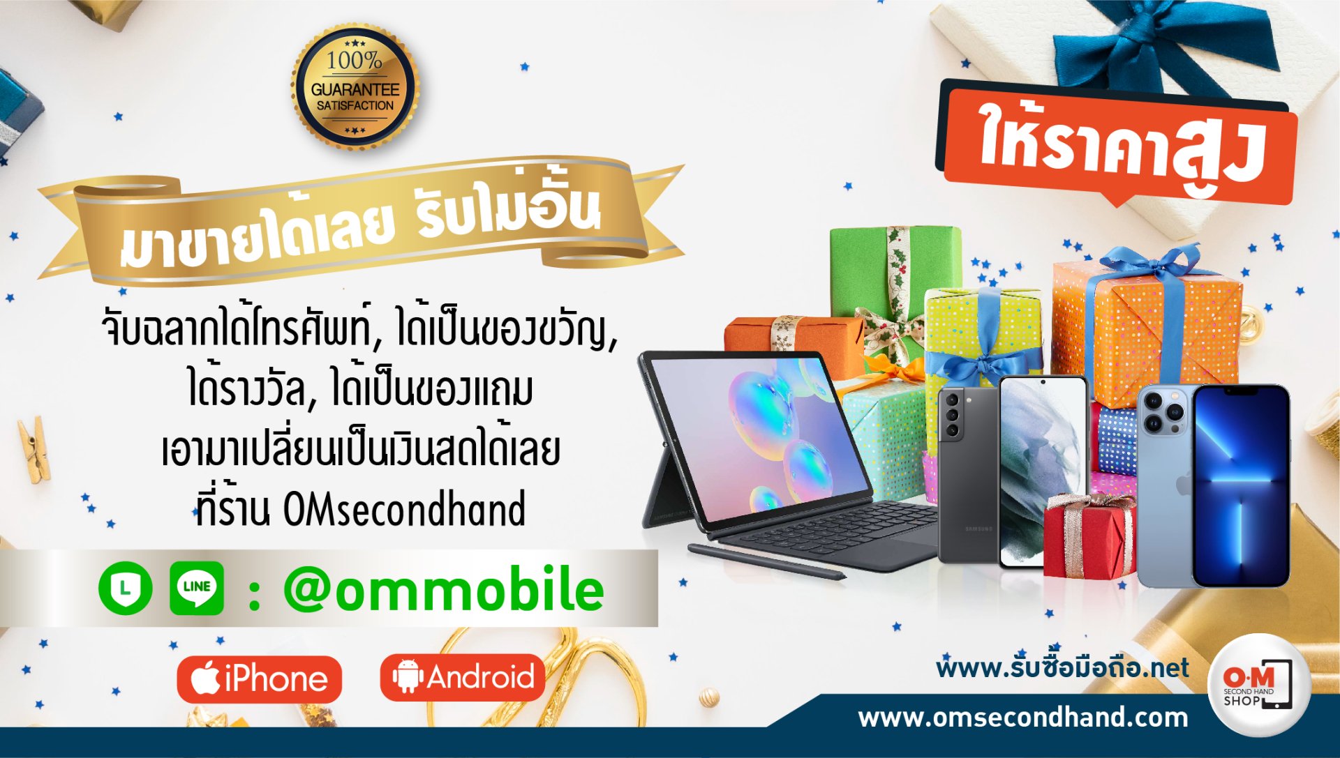 ร้าน OM secondhand รับซื้อมือถือ แท็บเล็ต ไอโฟน ไอแพด ให้ราคาจัดเต็ม ตีราคาชัดเจน ตามสภาพเครื่อง คุยง่าย จบไว บริการด้วยใจ รับซื้อจริง จ่ายเงินสดหรือโอนได้ทันที