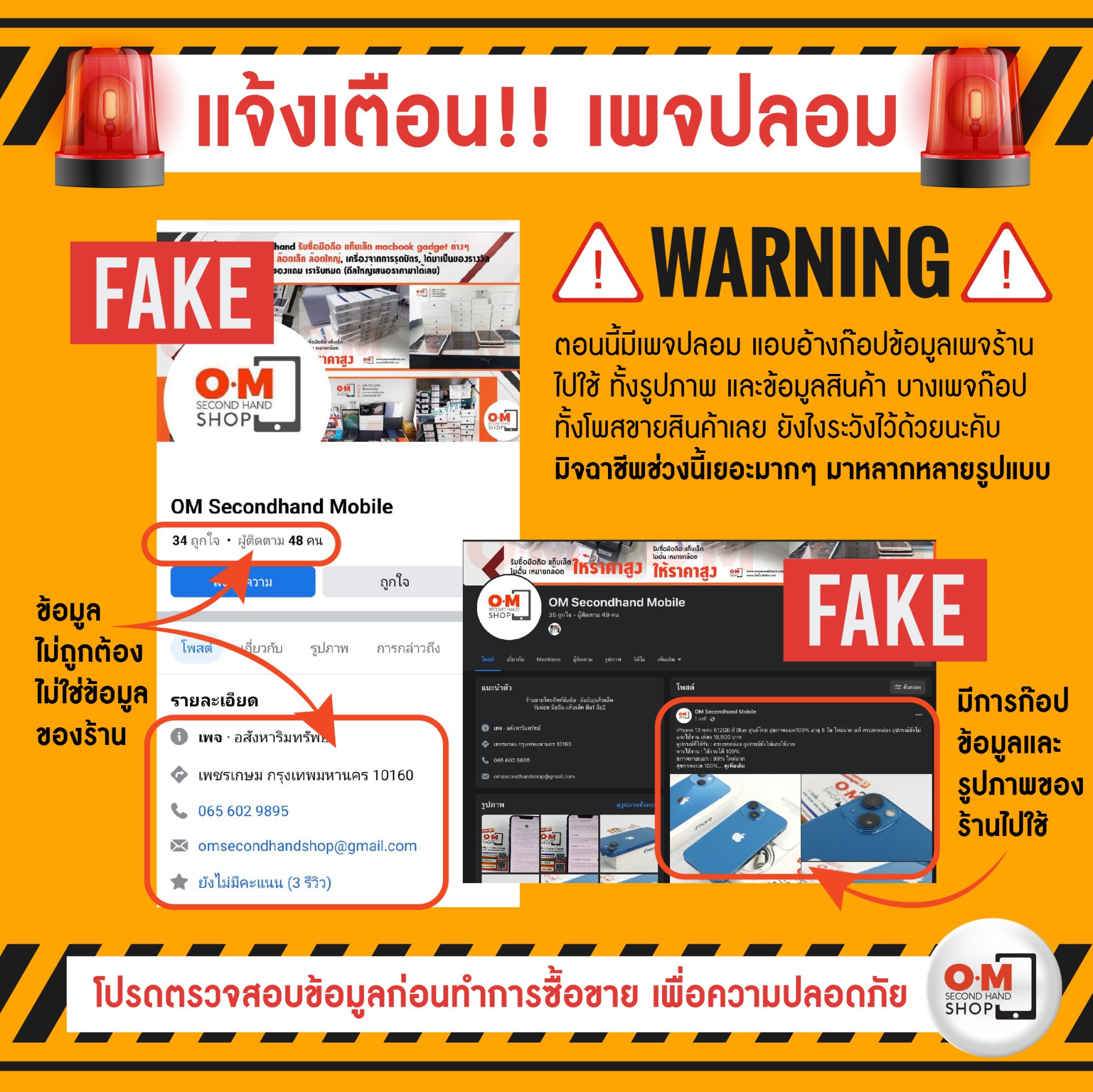 ตอนนี้มีมิจฉาชีพสวมรอย ทำเพจปลอมแอบอ้าง รวมถึงก๊อปข้อมูลโพสสินค้า รูปภาพ รายละเอียด ยังไงตรวจสอบข้อมูลFacebook ร้านให้ถูกต้องก่อนนะคับ