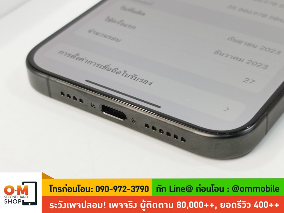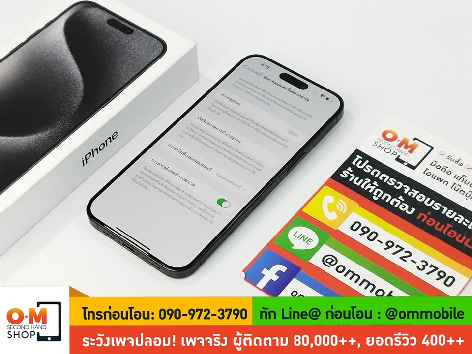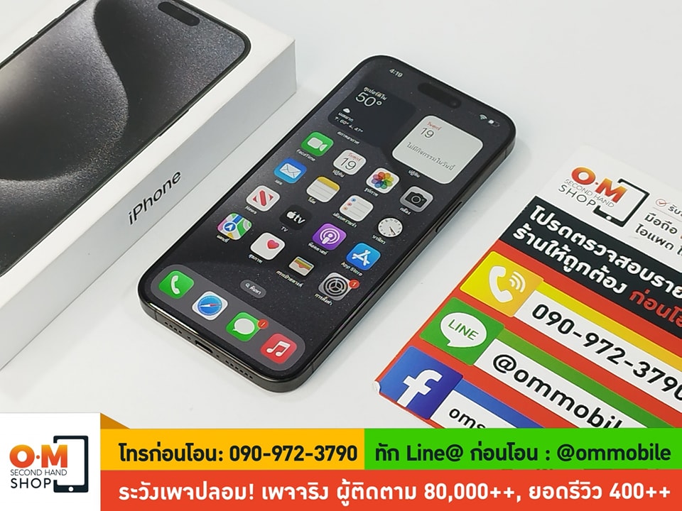 ขาย/แลก iPhone 15 Pro Max 512GB สี Black Titanium ศูนย์ไทย ประกันศูนย์ 16/12/2024 สภาพสวยมาก สุขภาพแบต 100% แท้ ครบกล่อง เพียง 47,900 บาท (206 อ่าน)