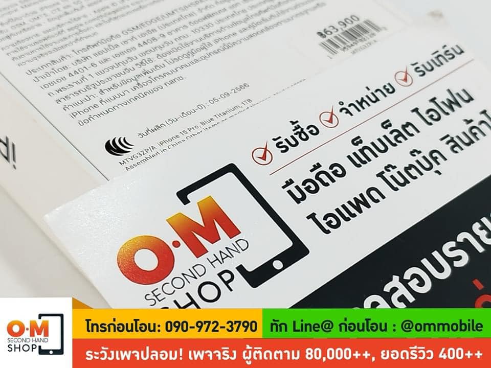ขาย/แลก iPhone 15 Pro 1TB Blue Titanium ศูนย์ไทย ประกันศูนย์ยังไม่เดิน ใหม่มือ 1 ยังไม่แกะซีล เพียง 49,900 บาท