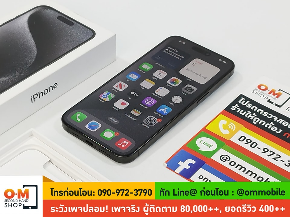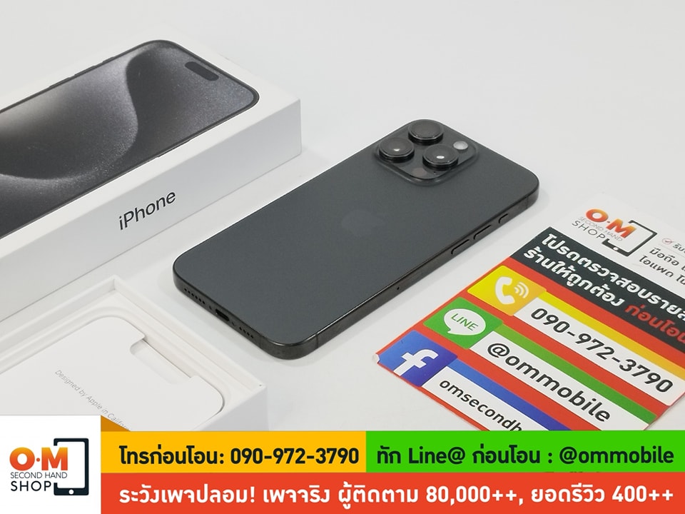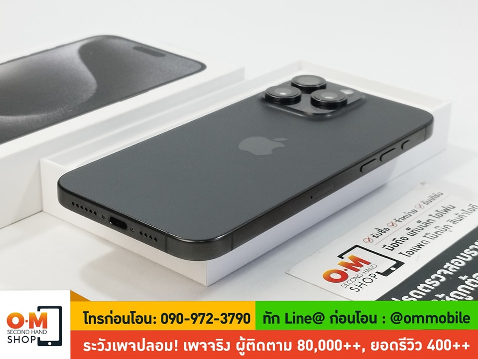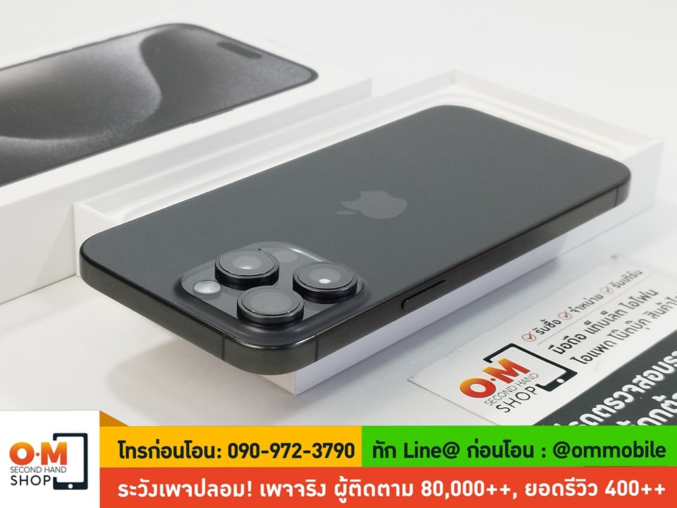 ขาย/แลก iPhone 15 Pro Max 256GB Black Titanium ศูนย์ไทย ประกันศูนย์ 06/01/2025 สภาพสวยมาก สุขภาพแบต 100% แท้ ครบกล่อง เพียง 42,900 บาท