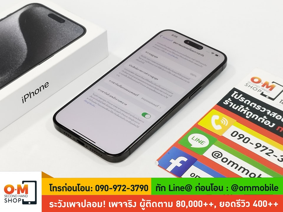 ขาย/แลก iPhone 15 Pro Max 256GB Black Titanium ศูนย์ไทย ประกันศูนย์ 06/01/2025 สภาพสวยมาก สุขภาพแบต 100% แท้ ครบกล่อง เพียง 42,900 บาท (177 อ่าน)