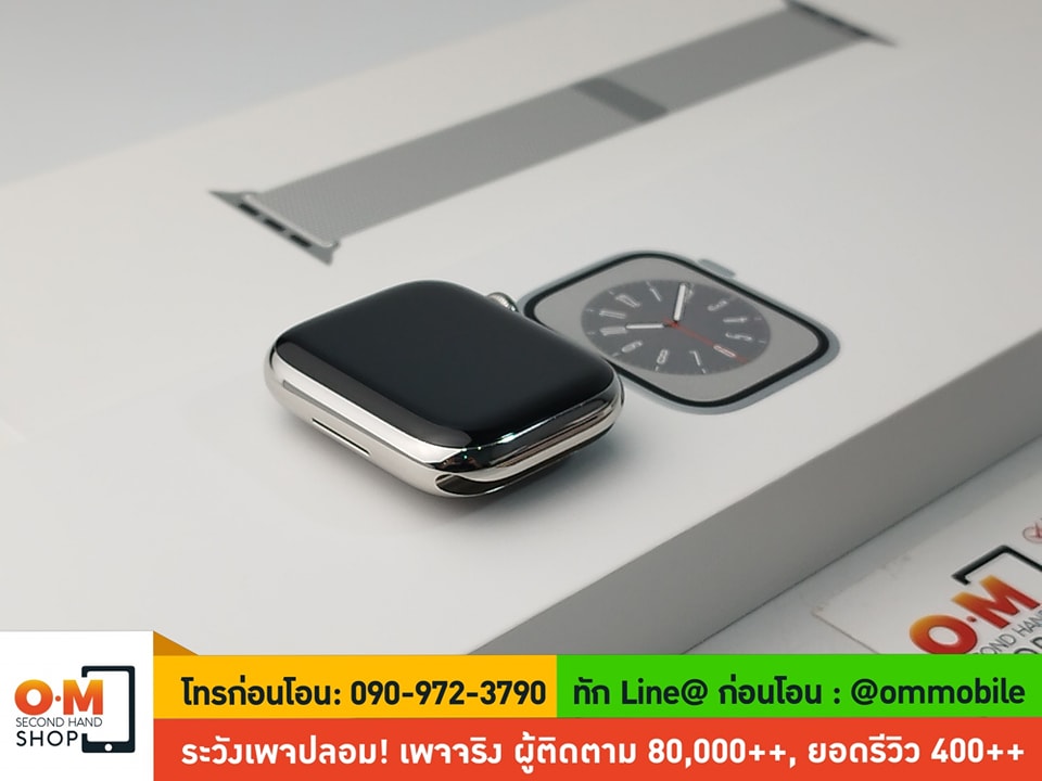 ขาย/แลก Apple Watch S8 45mm CEL Silver Stainless Steel Case ans Silver Stainless Steel Milanese Loop ศูนย์ไทย ประกันศูนย์ สภาพสวยมาก สุขภาพแบต 100% แท้ ครบกล่อง เพียง 16,900 บาท