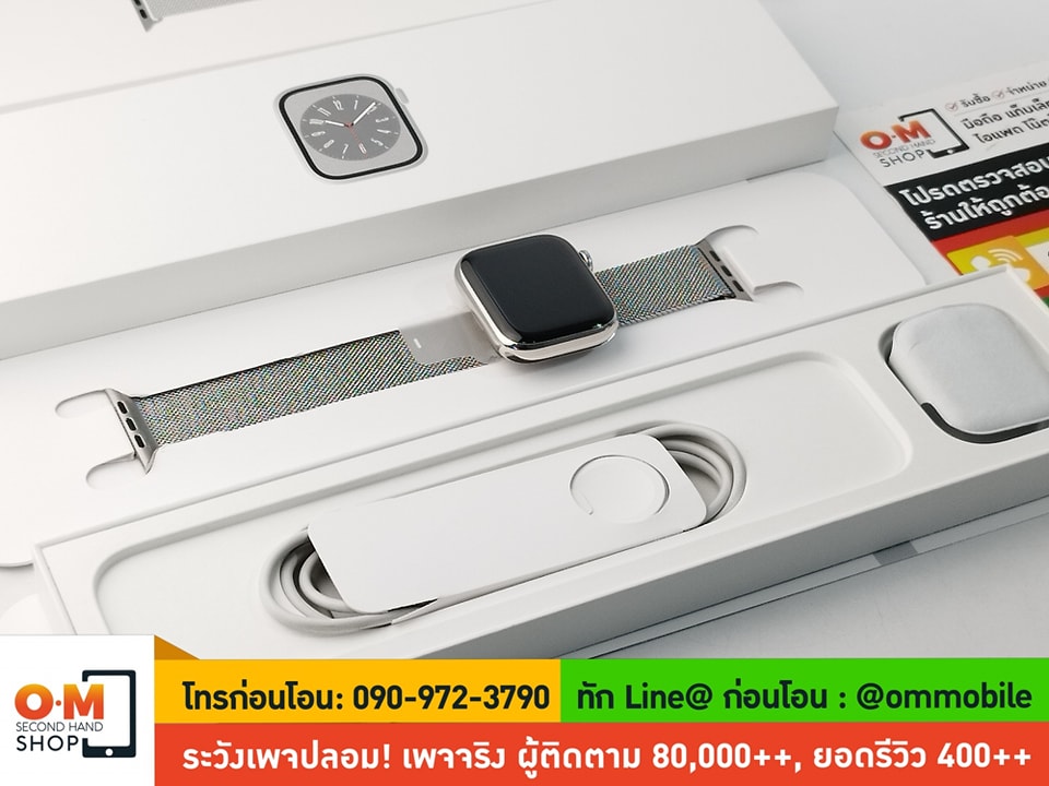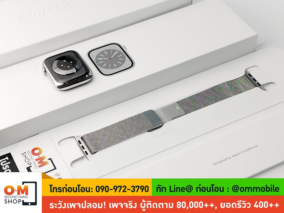 ขาย/แลก Apple Watch S8 45mm CEL Silver Stainless Steel Case ans Silver Stainless Steel Milanese Loop ศูนย์ไทย ประกันศูนย์ สภาพสวยมาก สุขภาพแบต 100% แท้ ครบกล่อง เพียง 16,900 บาท (289 อ่าน)