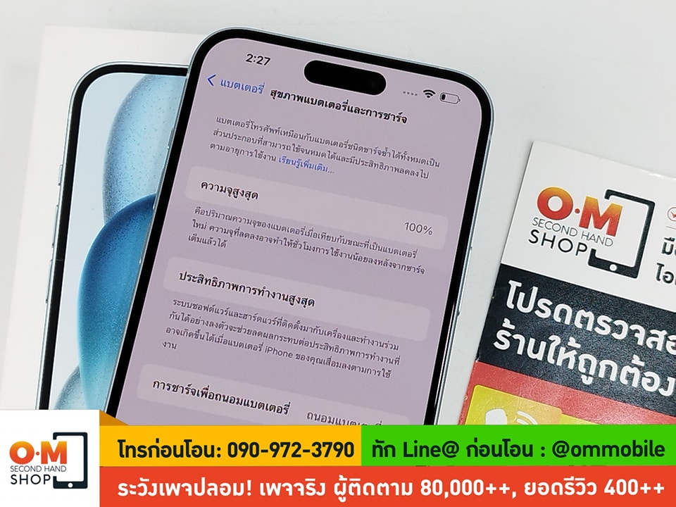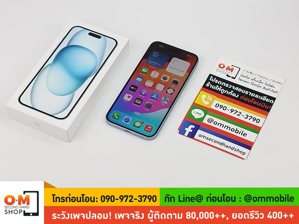 ขาย/แลก iPhone 15 Plus Blue 128GB ศูนย์ไทย ประกันศูนย์ยาว 18/02/2025 สภาพสวยมาก สุขภาพแบต 100% แท้ ครบกล่อง เพียง 29,900 บาท (144 อ่าน)
