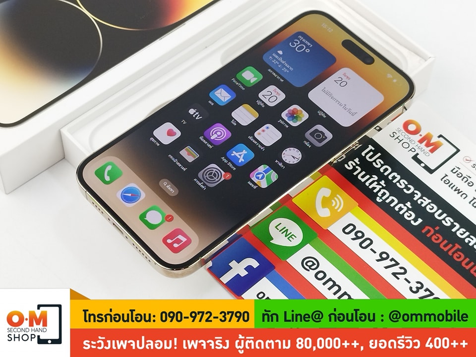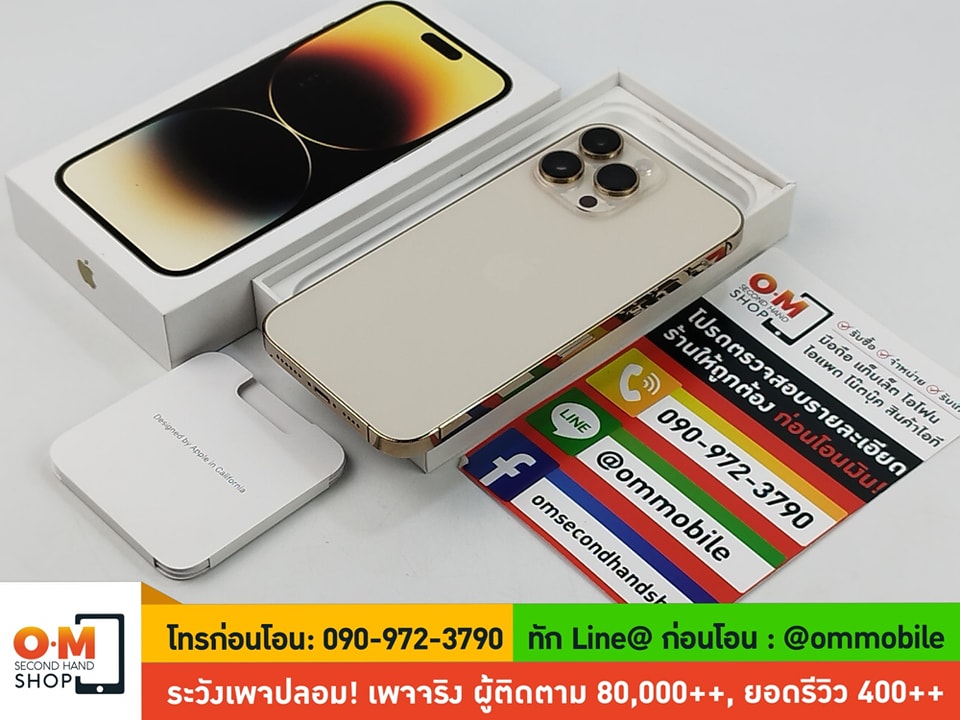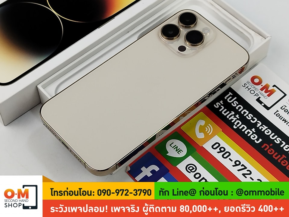 ขาย/แลก iPhone 14 Pro Max 128GB สี Gold ศูนย์ไทย ประกันศูนย์ 4/11/2567 แบต99% สภาพสวยมาก แท้ ครบกล่อง เพียง 33,900 บาท