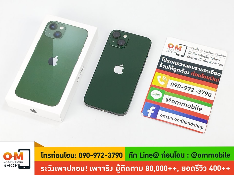 ขาย/แลก iPhone 13 128GB Green ศูนย์ไทย ประกันศูนย์ยาว สุขภาพแบต100% สภาพใหม่มาก แท้ ครบกล่อง เพียง 18,900 บาท